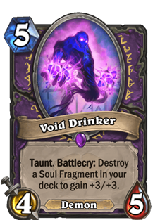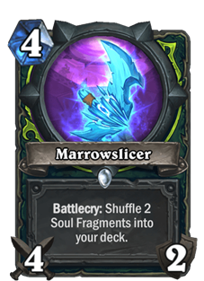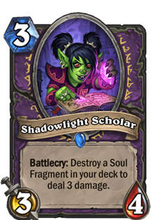 Each of these cards will shuffle 2 Soul Fragments into your deck. For both Warlock and Demon Hunter, life gain is an issue. Between the Life Tap hero power and swinging with your face as many turns as possible, Soul Fragments are a welcome addition to get a little bit of a buffer to be able to close out the game. And both of these cards stand on their own as pretty good, but it's the payoff cards that will really make Soul Fragments stand out.