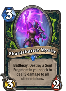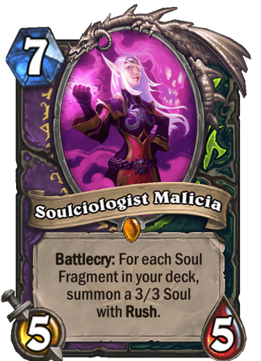 There are also some big Control-oriented tools with Soul Fragments as well. Shardshatter Mystic allows Demon Hunters to make a tempo play reminiscent of Dusk Breaker. And Soulciologist Malicia will give either class a whopping play to establish board presence, clear off your opponent's board, or maybe a bit of both. You'll get value off this card even with just 1 Soul Fragment in your deck.