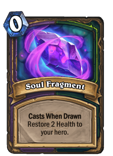 Soul Fragment is a non-collectible card that restores 2 health to your hero when drawn and then automatically draws another card for you. This card can't be added to your collection or 30-card deck, but it can be shuffled in-game through a number of new cards.