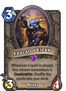 Educated Elekk and Potion of Illusion are the tip of an iceberg of cards in this set that are focused on giving Control and Combo players more pieces to play with. When a Mage card gives you copies, you should always be fearful of Sorcerer's Apprentice and Archmage Antonidas doing the things they do best.