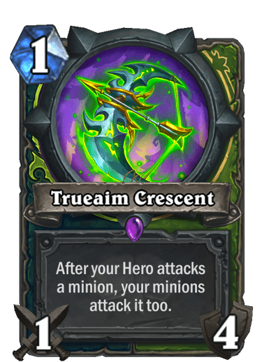 Trueaim Crescent also makes the recently revealed Ace Hunter Kreen look much more interesting. With that on the board, you can deal quite a bit of damage without any downside. Even without it, your minions can do a lot of value trading. Expect to see a lot of experimenting with this weapon in both classes.