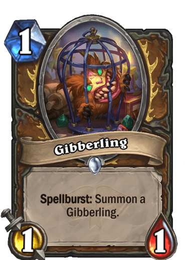 Gibberling at first glance seems innocent and silly enough. But its effect is actually scarily similar to Violet Teacher. And for a deck with reliable token Deathrattles (Soul of the Forest) and burst damage for a wide board (Savage Roar), don't overlook the possibilities. There could be some dangerously fast games if this deck draws right.