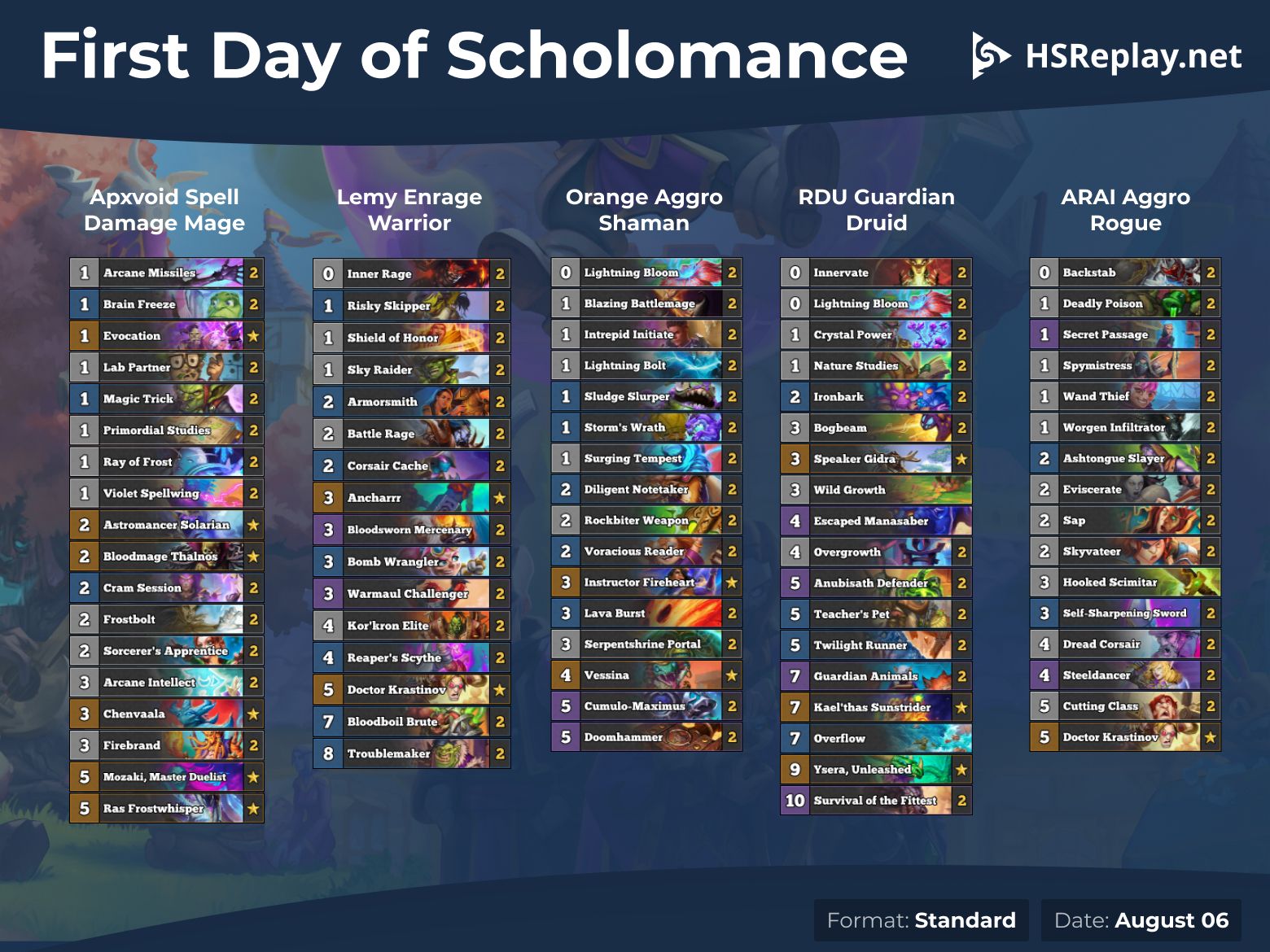 Scholomance Academy is here! And with it comes one of the largest, freshest gusts of wind we've seen mid-year in a long time. With new, interesting tools for every single class, this stands to be one of the most impactful expansions for Hearthstone. Though the first day of a new release is always a varied environment, we've already begun to see some impactful decks begin to show us what's ahead for this meta. We've highlighted some decks from streamers below that caught our eye and would be great places to start as you get acquainted with your classes.