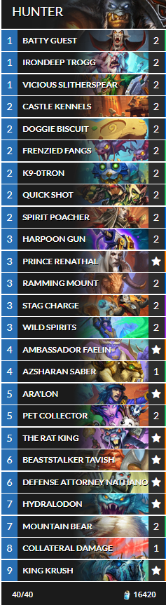 With this new, middle-of-the-curve, value-oriented option, I feel like Beast Hunter is getting a great card. I have never been a fan of the late game package included in the deck, whether it was Denathrius or Wing Commander Ichman. So getting a 6-Cost minion that is still able to bring a ton of value is exactly the way I would want to play the deck, as it allows focusing the end of the curve on closing the deal.