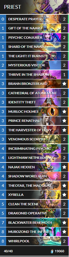 As for Priest, its Thief archetype is not performing as well as Beast Hunter, but still receives the praise of decorated Priest players like TicTac. He could be joined by a lot of Priest enthusiasts when Theft Accusation and Incriminating Psychic are added to the game, both cards clearly supporting this specific archetype.