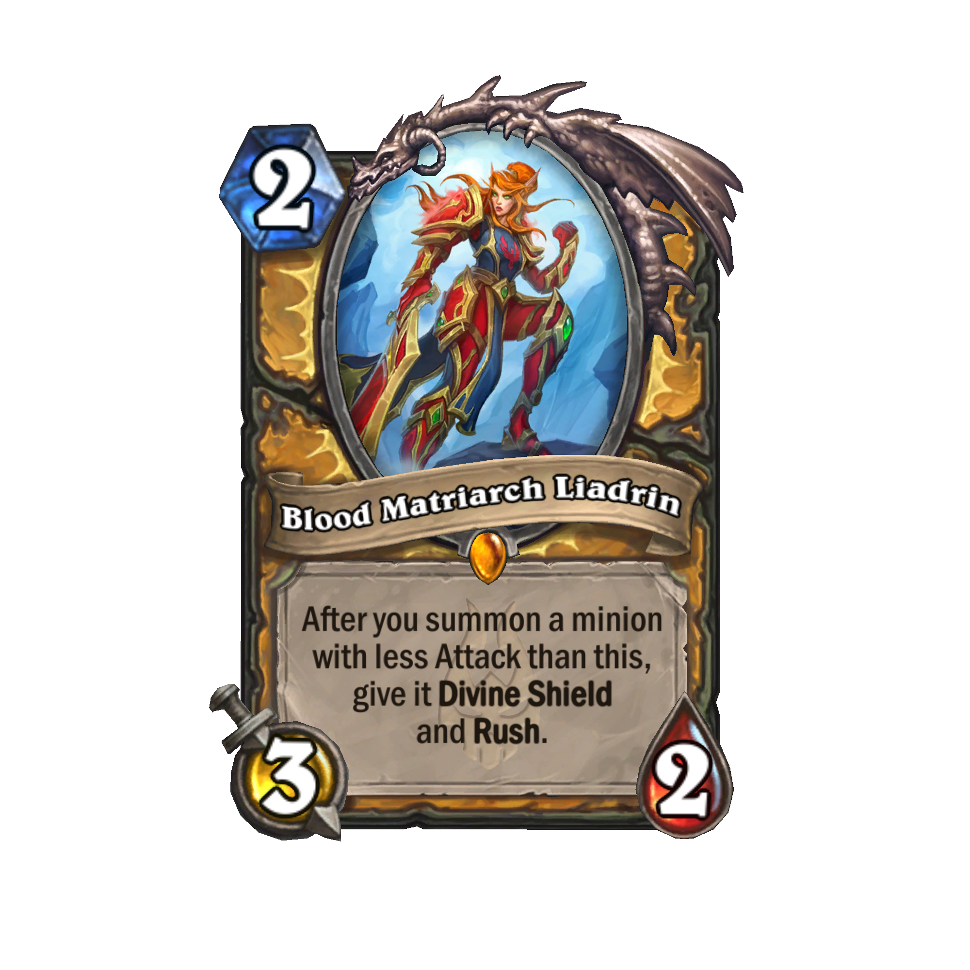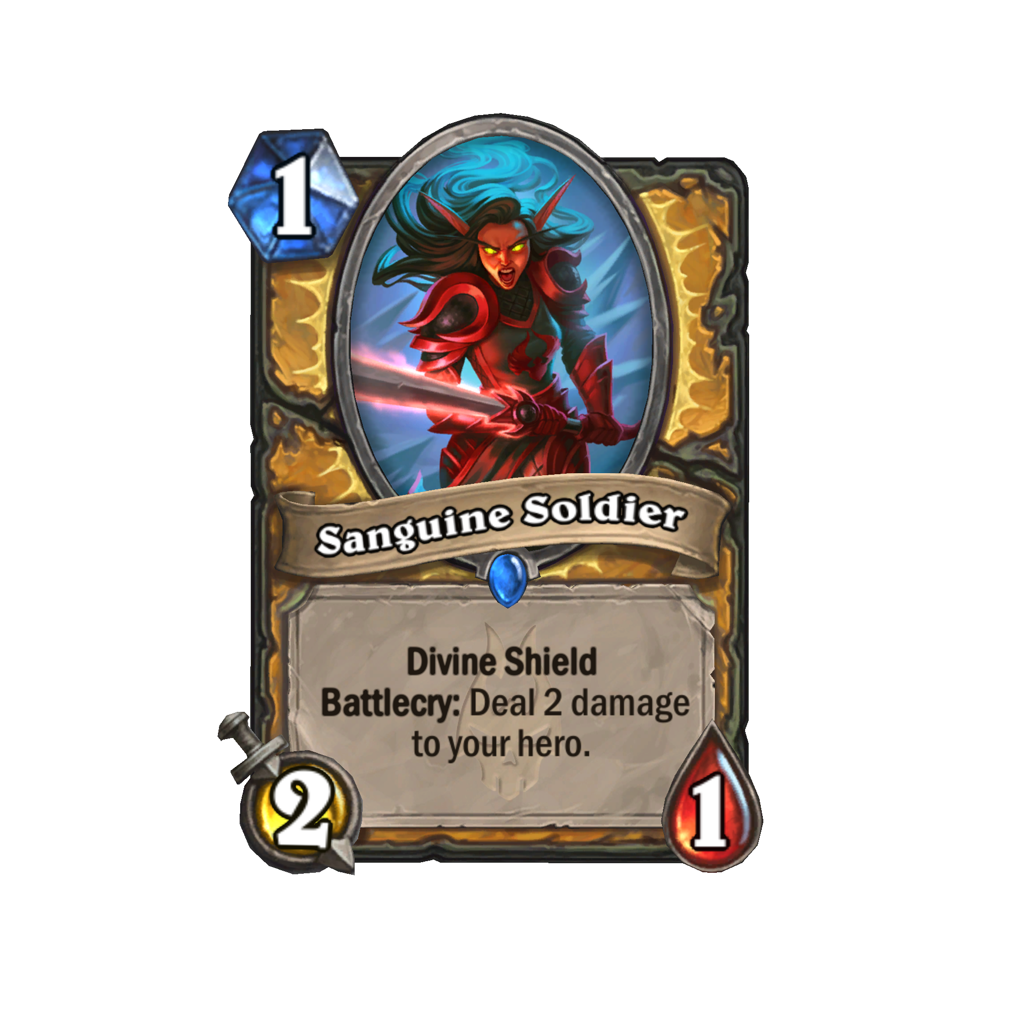 Blood Matriarch Liadrin could potentially give Divine Shield to all your Recruits as you summon them. Seal of Blood seems bonkers with Stonehearth Vindicator and almost makes me want to play Sunwing Squawker again. And don't miss that even with its downside, Sanguine Soldier is just a good one-cost card, perfect to get a strong start to the game.