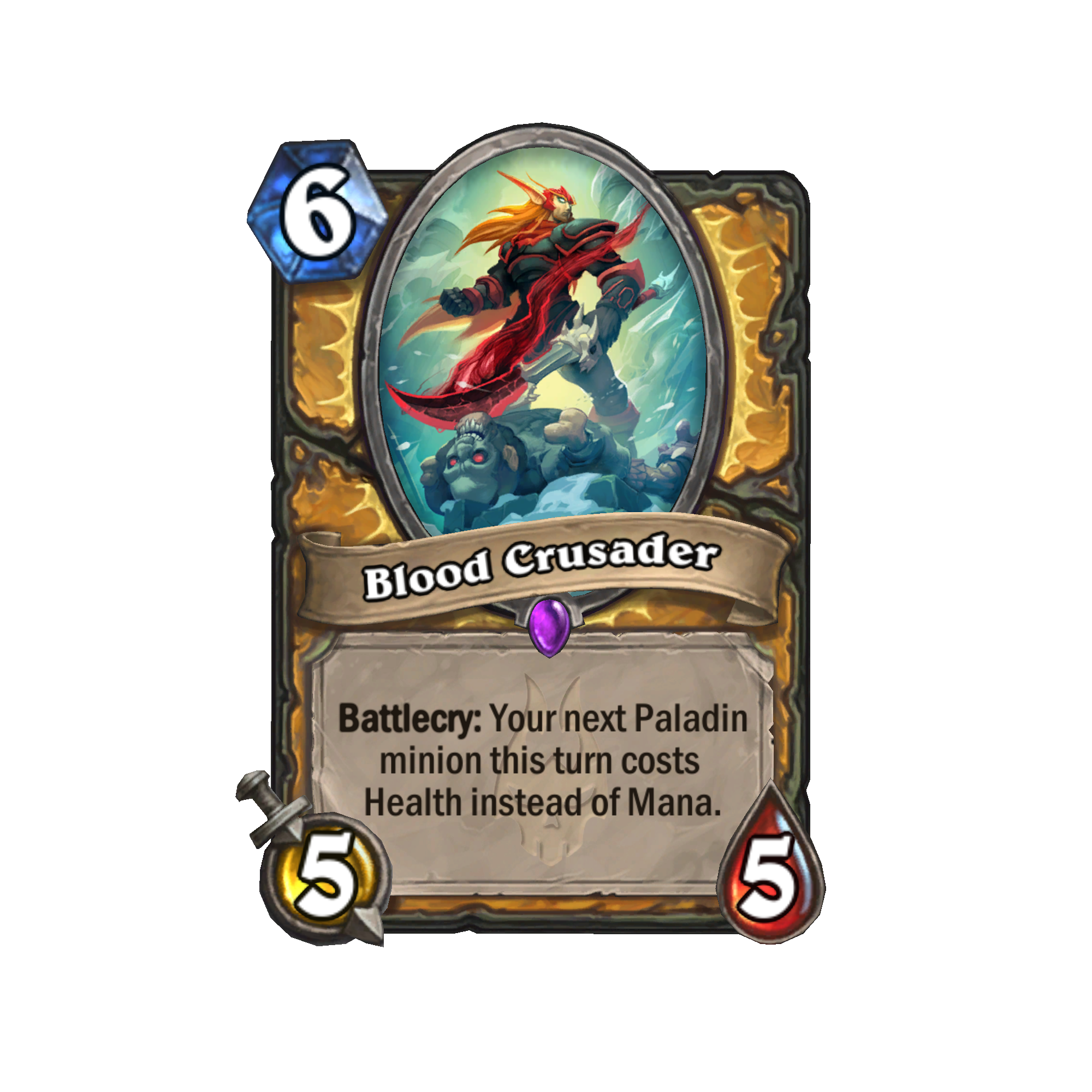 There are five new Paladin cards forming the new "Blood" package. These cards seem extremely strong for their cost, but you will have to pay a little health as well in order to cast them. As such, keeping your health high or packing some healing seems mandatory to make these work.