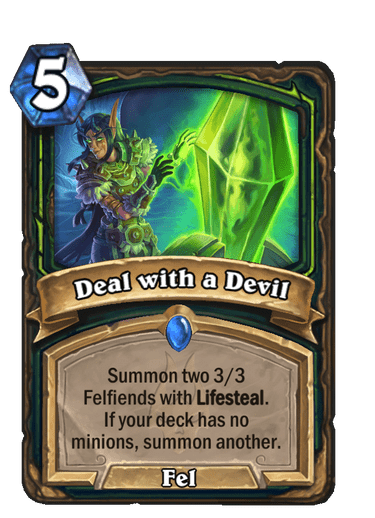 Another new card Deal with a Devil also tilts the deck towards survival. It seems to be a solid midgame spell to keep your health count high.