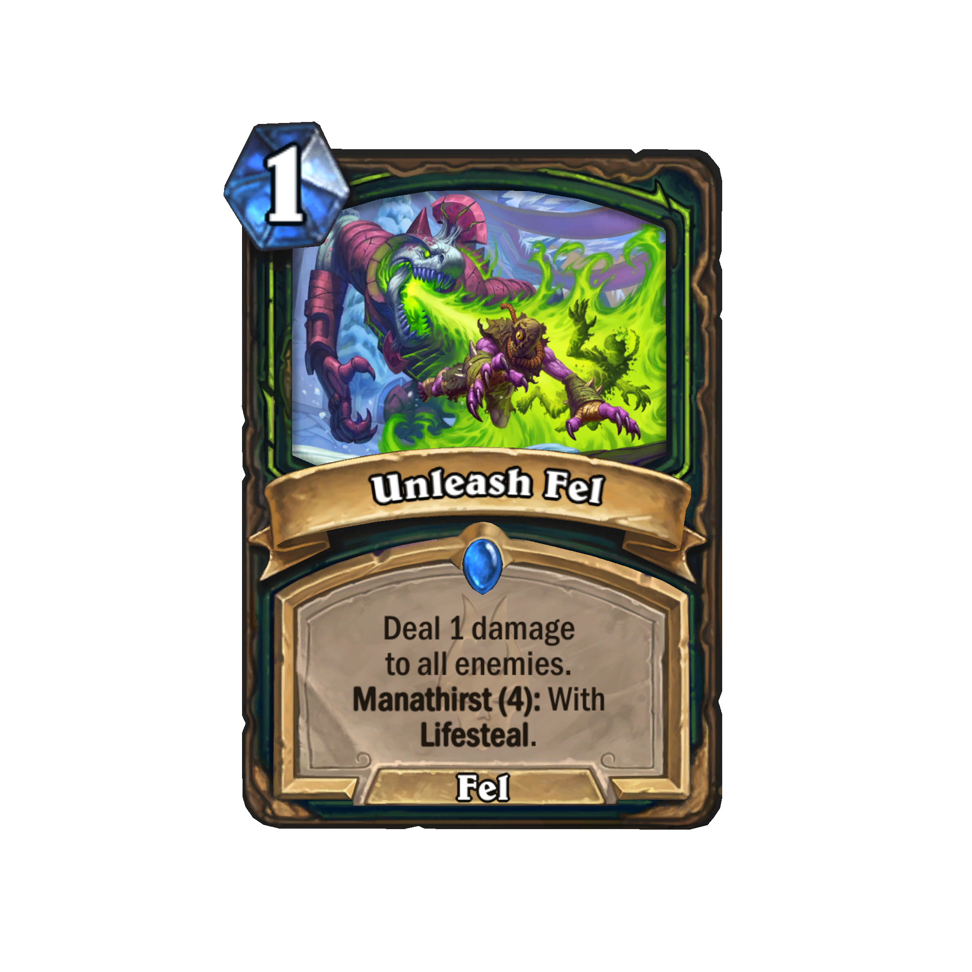 Unleash Fel is a cheap AoE spell with potential Lifesteal attached to it. Both effects are helpful to a deck looking to stall the game until it can summon huge units.