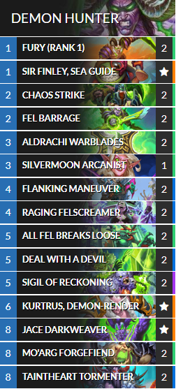 Feel free to remove Sir Finley, Sea Guide and both Raging Felscreamers to add Vanndar Stormpike and Abyssal Depths if you like that take on the deck more.