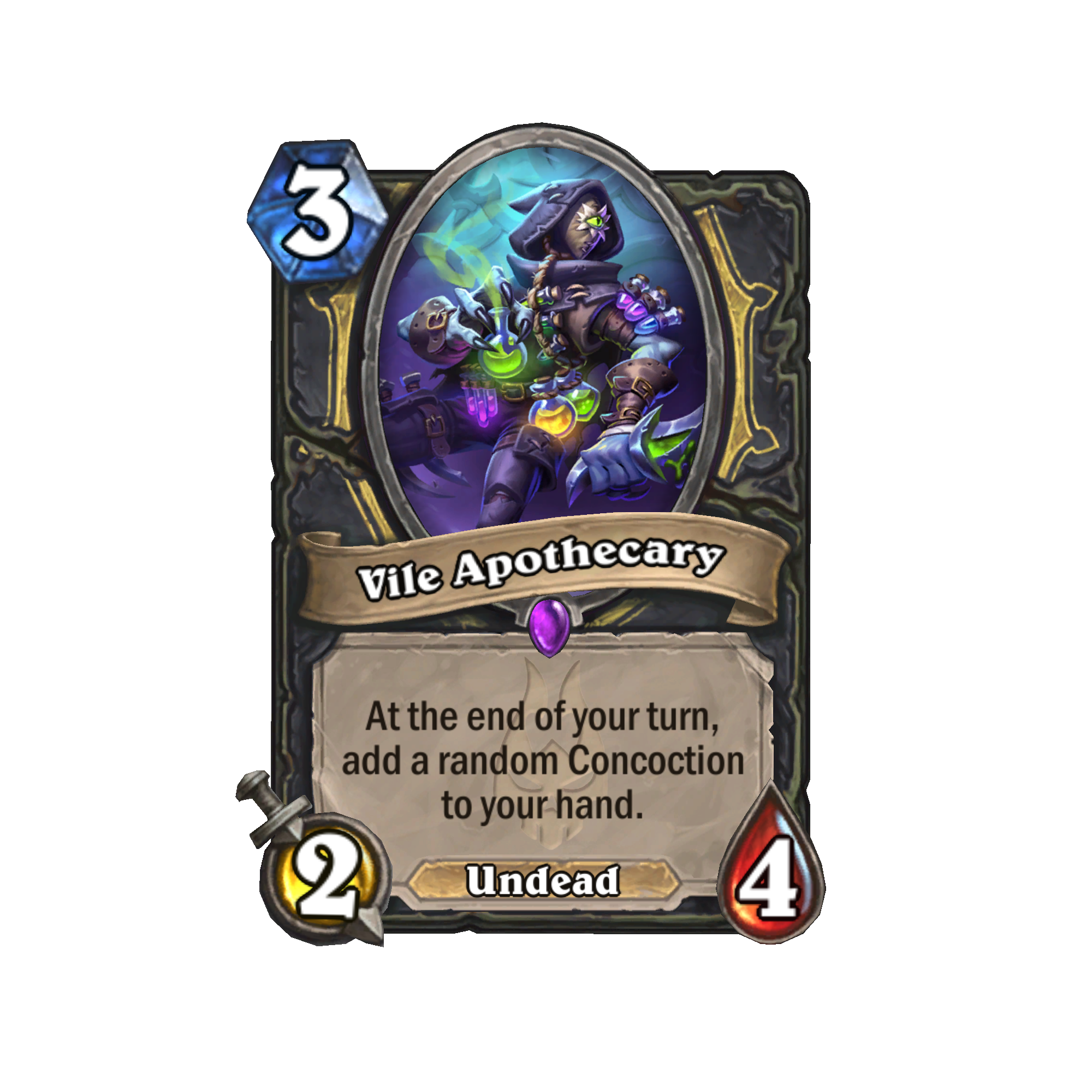- The cards generating Concoctions, such as the new Vile Apothecary and Potionmaster Putricide. These are collectibles and playable cards.