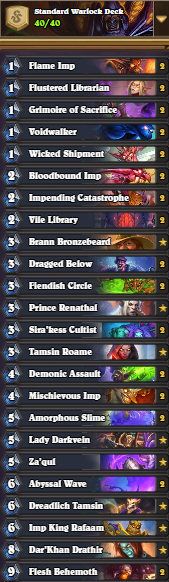 Cons: Gul'dan got a lot of cool stuff flavor-wise, but it seems so difficult to get away from the Imps or Curse synergy in the class as soon as we are talking about posting results. Discard seems good alongside the Imps, and the Undead are looking like a nice compliment to the Curses in a control deck. There's definitely hope to see new archetypes emerge.